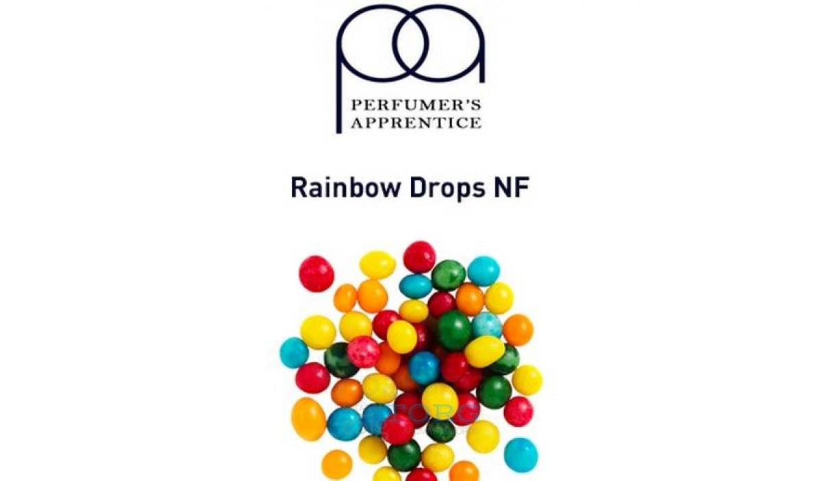 Неогнеопасная версия аромы Rainbow Drops от ТПА (Perfumers Apprentice). Это все те же кисло-сладкие фруктовые жевательные конфетки — готовый микс для вашей электронной сигареты. Запаривать в жидкость для рецепта Rainbow Drops NF можно в дозировке от 6% (в смесях) до 10% (соло).
